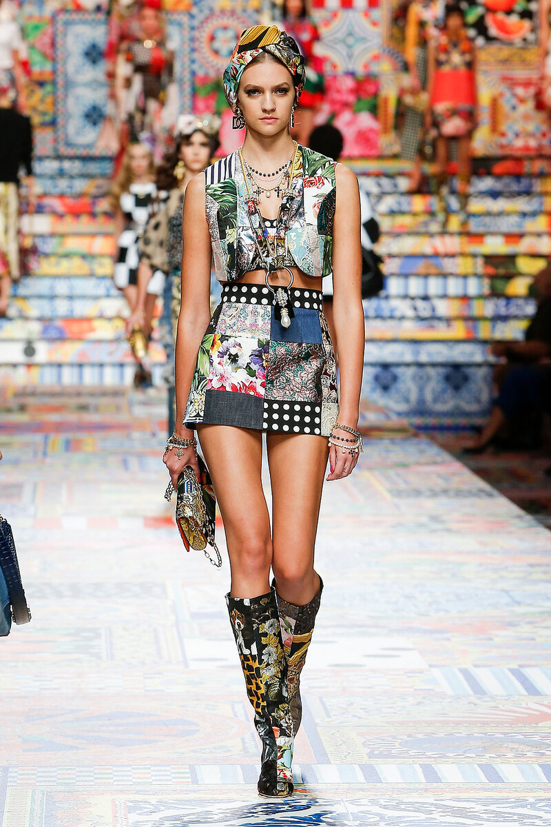 Dvojica Domenico Dolce a Stefano Gabbana predstavila takmer deväťdesiat outfitov a dobrú polovicu z nich by sme okamžite prijali v šatníku. Trendy džínsové saká, pestrofarebné šaty rôznych strihov, odtieňov aj dĺžok, minimalistické biele halenky, sexy čižmy hrajúce všetkými farbami, masívne kvetiny do vlasov, elegantné čierno-biele káro či džínsy v novom kabáte? Nič z toho by vo vašom šatníku nemalo budúcu sezónu chýbať!