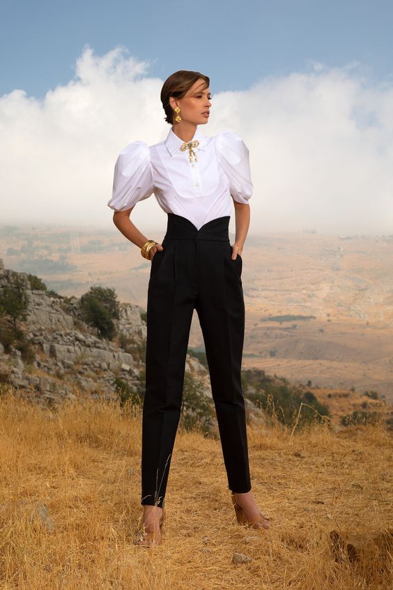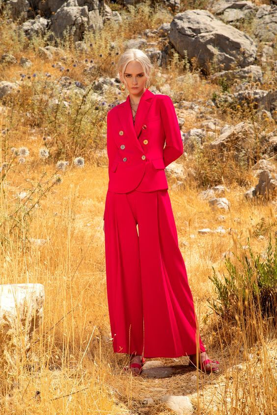Mám z nej strach. Modelka ešte podľa môjho názoru nemala osemnásť, ale dojem, ktorý z nej tento nohavicový komplet robí, je desivý. Buď je to upírka, alebo divná Catwoman, alebo jednoducho len tvrdá biznismenka, ktorá z vás vysaje všetku energiu a potom vás odkopne. Okrem toho si myslím, že slabší jedinci by si mohli myslieť, že predĺžené rukávy by im mohli dodať schopnosť lietať, a to by potom ešte len bola tragédia…