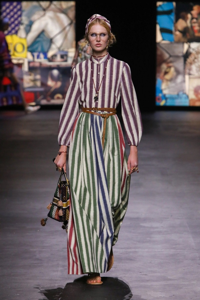 Nová kolekcia SS2021 je okrem iného bohatá na kašmírový vzor, kvetinové motívy či trendy prúžky. Nájdete ich na šatkách, šatách, tunikách alebo napríklad aj na kabátoch. Na druhej strane v nej nechýbajú ani maxi šaty z hodvábneho šifónu zdobené v niektorých prípadoch korálikovou výšivkou. Pri pohľade na nový Dior sa tak ocitáme niekde medzi uvoľnenými šesťdesiatymi rokmi a boho štýlom s nádychom podmanivej antiky. A pokiaľ ide o nás, ručička váh sa úplne jasne prikláňa na pravú stranu. Antika je proste antika. Môžeme mať všetky tie šaty v šatníku, prosím?!