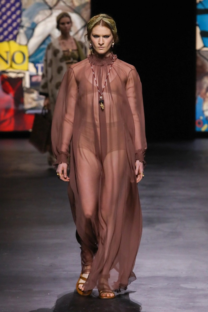Niekedy ma v noci budia nočné mory. Sníva sa mi napríklad, že som sa ocitla v inom storočí alebo tisícročí. Keď neexistovali žiletky ani teplá sprcha. A žiadna elektrina. Jednoducho pravek. Keď nosíte na sebe to, čo si vyrobíš z darov prírody. Moja nočná mora sa naplnila pri pohľade na túto kolekciu. Christian Dior sa zrejme vrátil ku koreňom. Veľmi hlbokým koreňom…