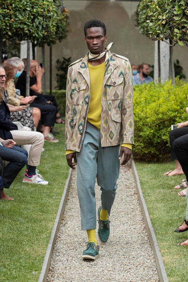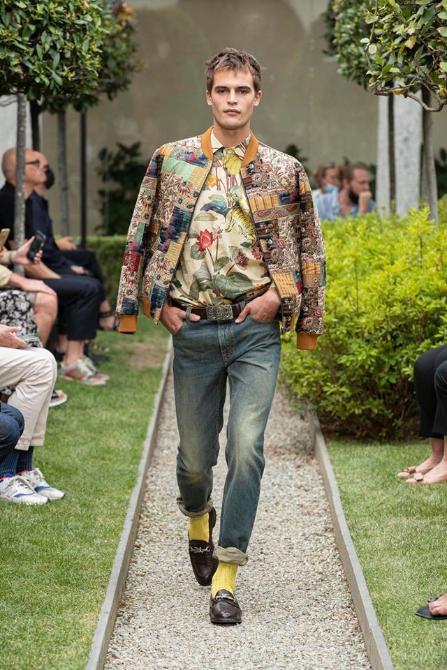 O správny balans a zachovanie maskulinity sa postarali voľné a svieže strihy, štýlové mokasíny, tričká s golierikom, kravaty a šatky okolo krku. V kolekcii SS 2021 pochopiteľne nechýba ani ikonický kašmírový vzor, ktorý Etro tentokrát aplikoval na štýlové bombery, tričká či pánske tašky a kravaty.