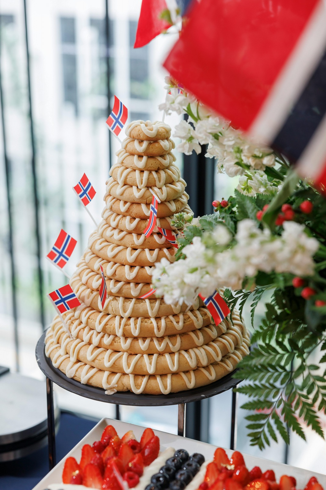 Jedním z nejdůležitějších momentů je krájení svatebního dortu. V Dánsku existují různé druhy dortů – například slavný „kransekage“ z mandlové pasty ve tvaru kruhů nebo dort ve tvaru rohu hojnosti.