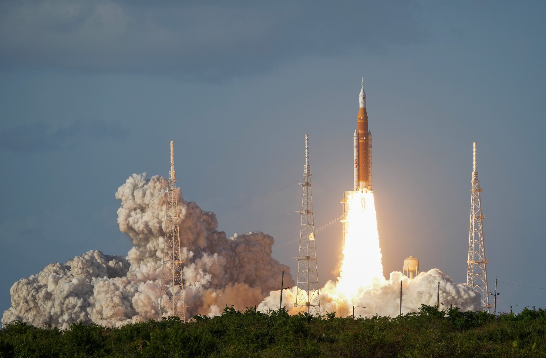Raketa vysoká jako 32patrová budova s třemi Američany a jedním Kanaďanem na palubě vzlétla z Kennedyho vesmírného střediska NASA, kde se shromáždily desítky tisíc lidí. Davy lidí zaplnily také okolní silnice a pláže, což připomínalo lety na Měsíc v rámci programu Apollo v 60. a 70. letech. Jedná se o dosud největší krok NASA směrem k zajištění trvalé přítomnosti na Měsíci, uvedla agentura AP.