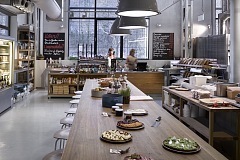 O co je tahle restaurace s pekárnou v Pernerově ulici v Karlíně vzdálenější od centra Prahy, o to více stojí za to se sem vydat. Už při letmém pohledu do menu nabízejícího takové lahůdky, jako jsou polévka z kotrče nebo grilovaná kachna s mrkví, křenem a kapustou, je jasné, že tady půjde o zpracování tradičních českých surovin. Filozofií podniku je dělat věci tak, jak se dělávaly dříve, a přenést je do současnosti s novou, svěží podobou. Zkrátka propojovat staré a nové. Na první pohled obyčejným surovinám tady dávají zcela jedinečnou tvář. A snaží se zpracovávat opravdu všechno: zeleninu od listů po kořeny, pečou kváskový chleba, jídla připravují na ohni rozdělaném dřevem… Můžete tady nakoupit luxusní suroviny pro vaření doma u pultu jako v krámě anebo si vychutnat jídlo u dlouhého stolu v příjemné, až domácké atmosféře. Ze světlého prostorného interiéru prosyceného vůní čerstvých ingrediencí se vám zkrátka nebude chtít pryč.
