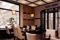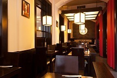 Interiér restaurace je asijsky přímočarý a jednoduchý. Použité barvy – červená, hnědá a bílá – ničím neruší, naopak příjemně korespondují se servírovanými jídly.