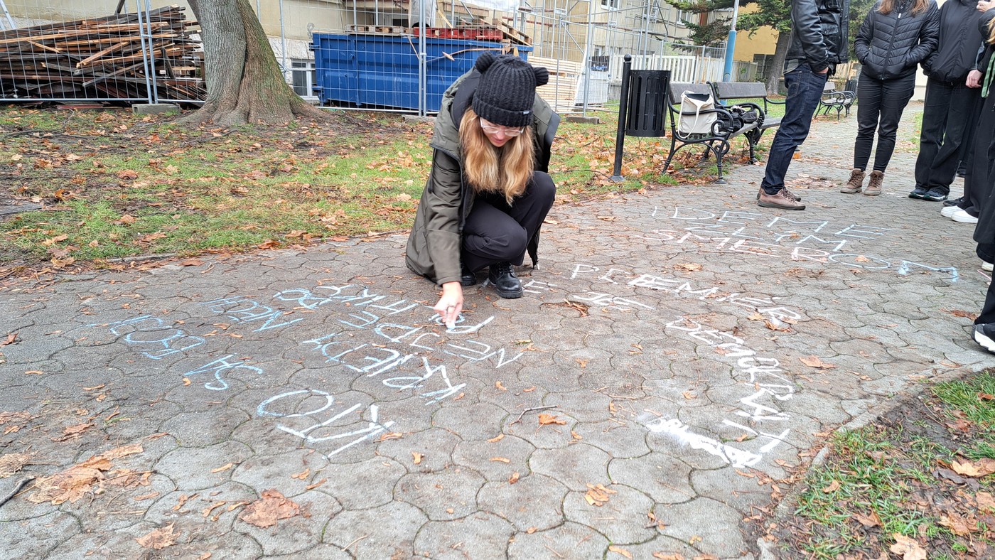 Študenti gymnázia sa preto rozhodli, že svoj názor prejaví verejne. Jedným z nich bol aj 19-ročný žiak s prezývkou Muro, ktorý napísal pri škole kriedou heslá proti Ficovi, vrátane hanlivého odkazu. Polícia ho potom odviedla na výsluch, po ktorom ho prepustila.